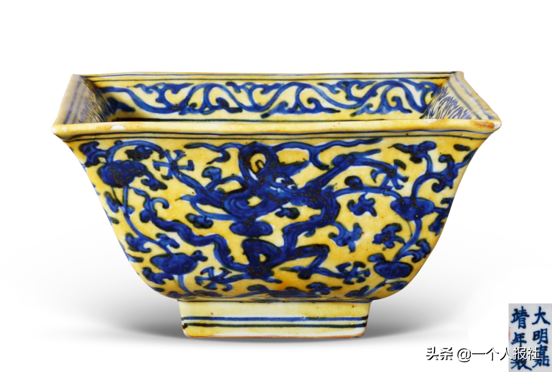 明嘉靖黄地青花龙纹斗碗