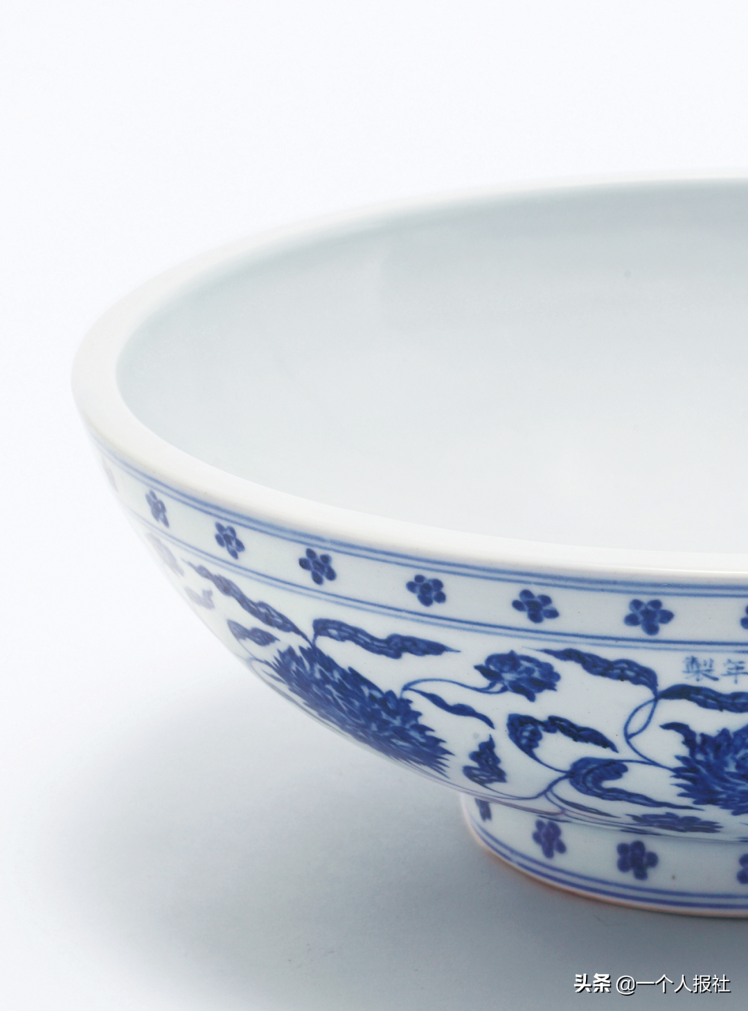 本品为宣窑青花御瓷之典范,其选料、制样、画器、题款无一不精,为宣德一朝新出样式,造型敦实端庄,胎体厚重坚致,口沿平切,棱角明显,为宣德碗类最奇特者,能与之相当的品类,仅见洒蓝釉暗刻龙纹钵和青花云龙纹钵,皆以厚胎平口着称。其功用文献失载,后世众说纷纭,至今未明。其外壁装饰构图常见于缠枝四季花卉、岁寒三友图、缠枝莲花、缠枝灵芝、双龙赶珠、缠枝牡丹、缠枝莲托八宝、折枝瑞果等纹样,存世数量罕少,约在三十件之内,散见于世界各大收藏机构。