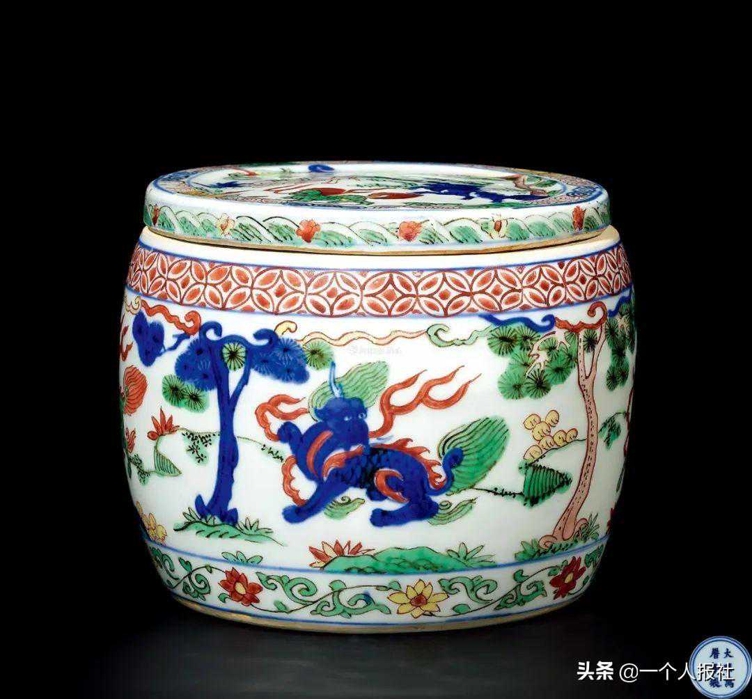 明万历五彩瑞兽纹盖罐