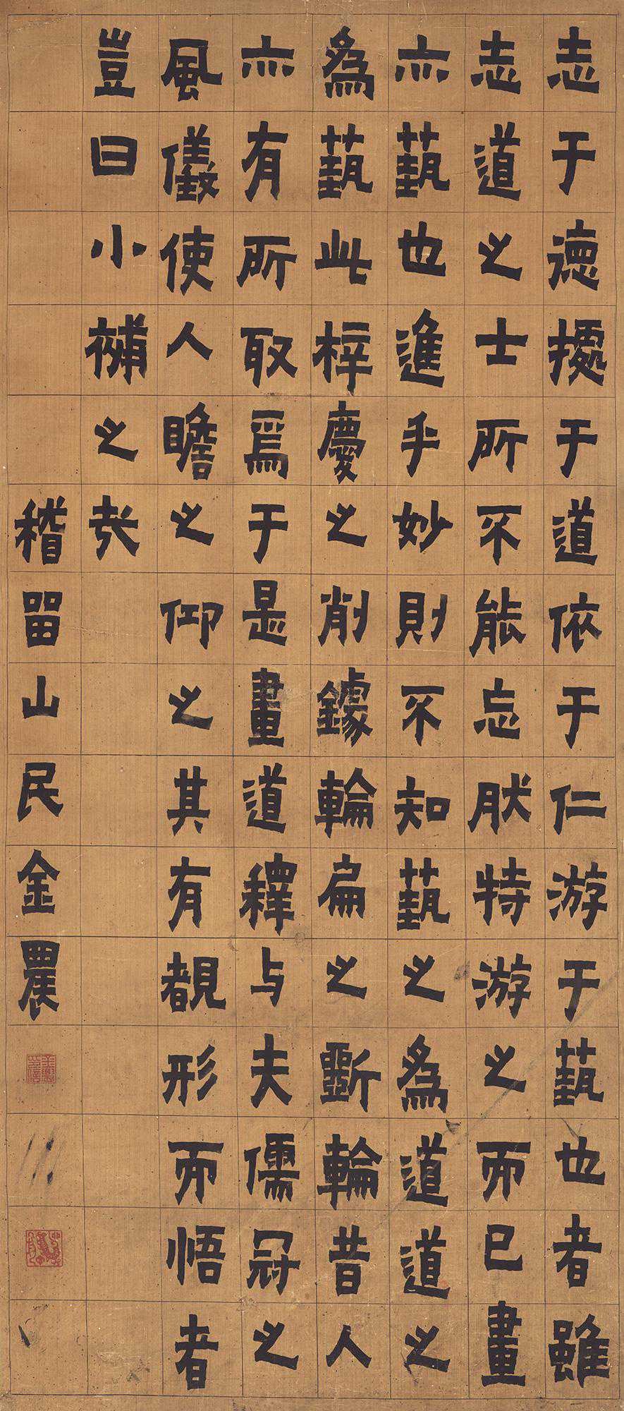 今人作正书是锺、王法,然锺、王古字亦多与今不同。世传六朝、唐初碑上字分隶相杂,疑当时正书如此。至唐中叶以后,始变如今法。后人纯学锺、王也。右军正书多古字,东方朔画赞“序”字作“厚”,乐毅论“杀”字、“抃”字,黄庭经“耶”字,遗教经“”字,今皆不行。今人所用只是宋、元体。曹娥碑犹古,陕西传摹,尽去之矣。古人作小正书,与碑板诰命书不同。今人用碑板上大字作小正书,不得体也。祝希哲常痛言之。