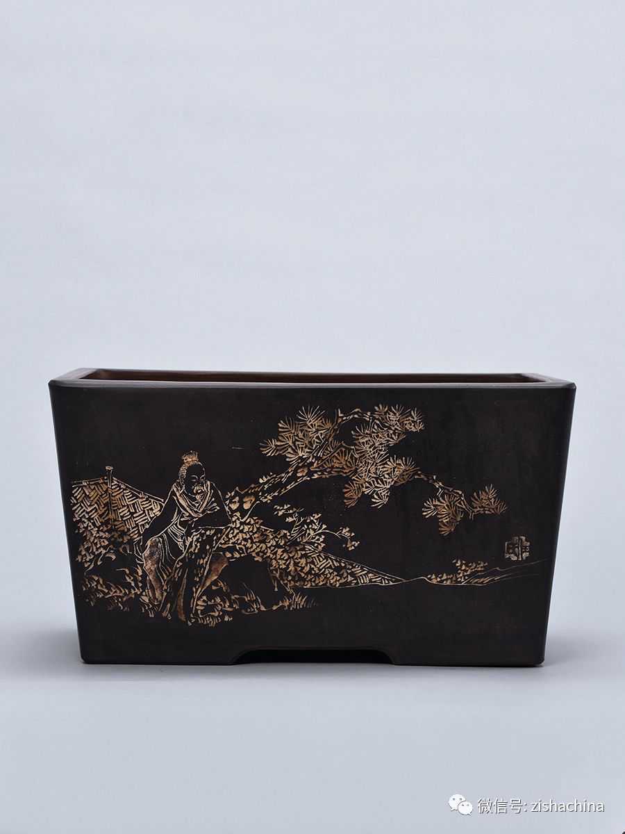 二是刻绘的器型也十分多样,既有实用器,也有观赏器,如花盆、香筒、茶壶、赏瓶、陶板等。