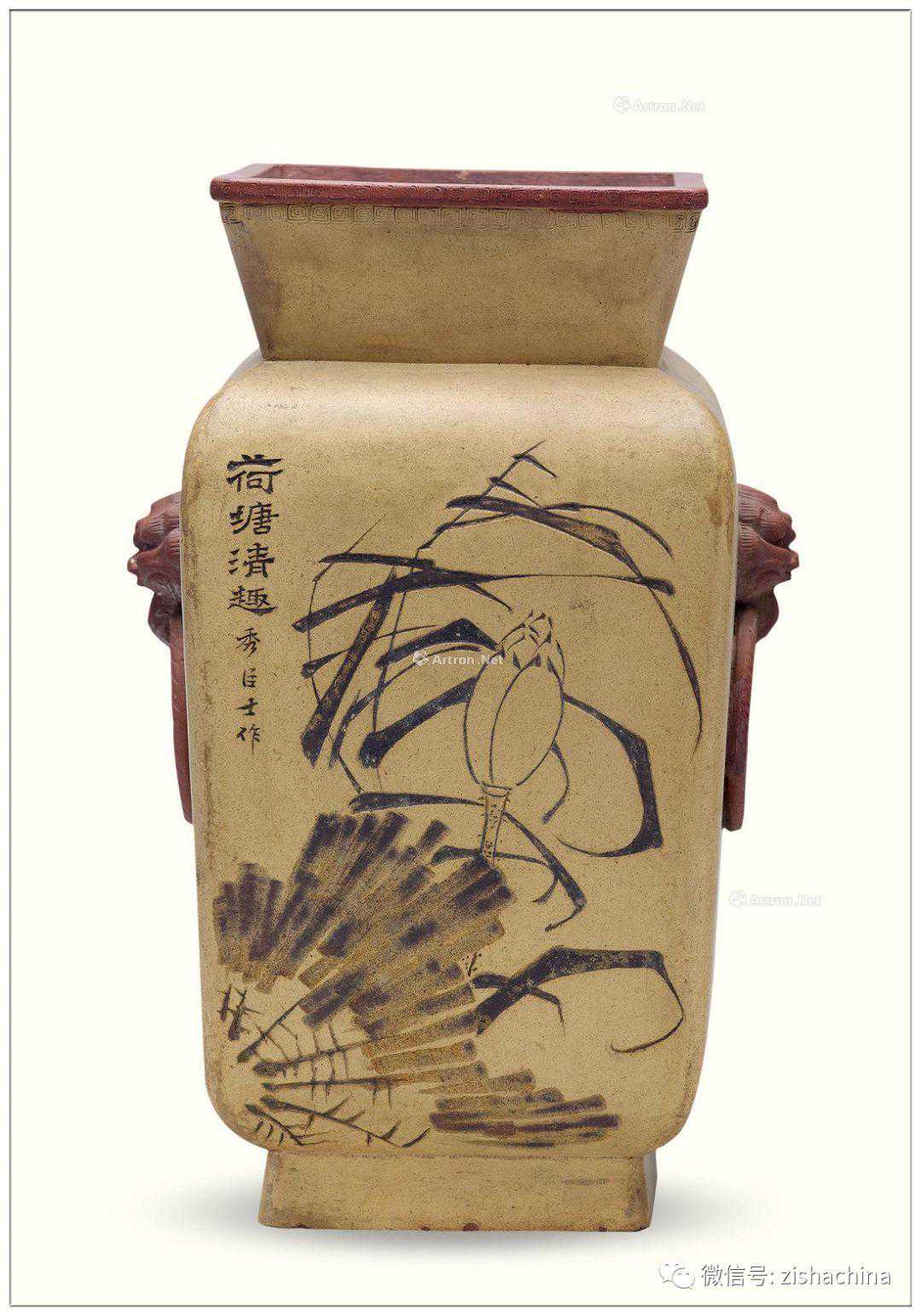 任淦庭(民国)本山绿泥四方花瓶