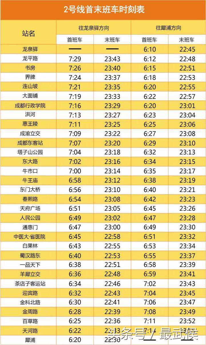 2号线首末班车时刻表