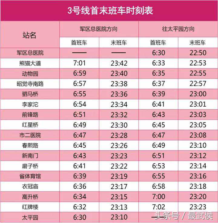 3号线首末班车时刻表