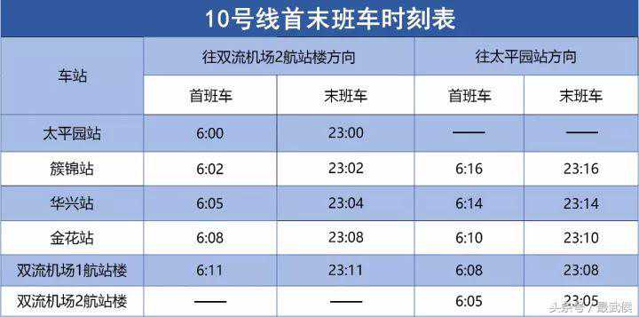 10号线首末班车时刻表