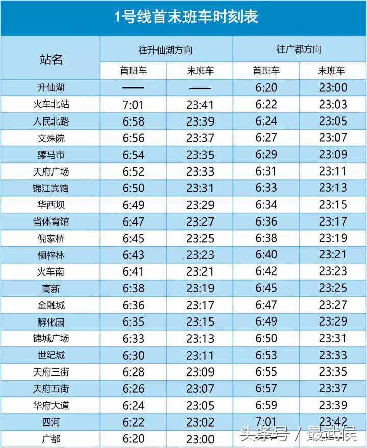 1号线首末班车时刻表