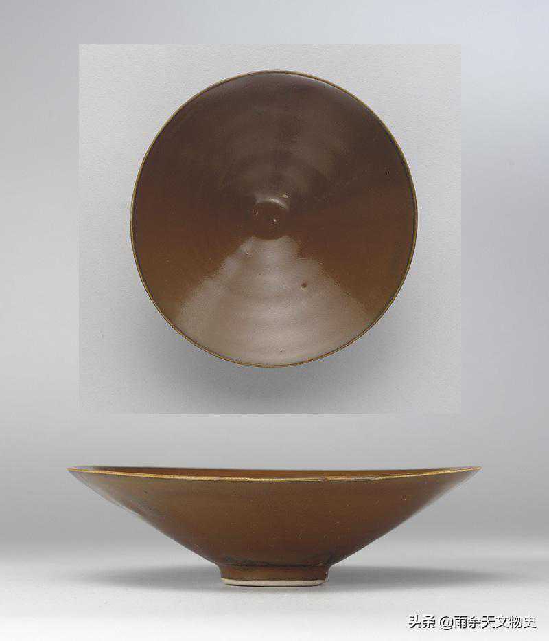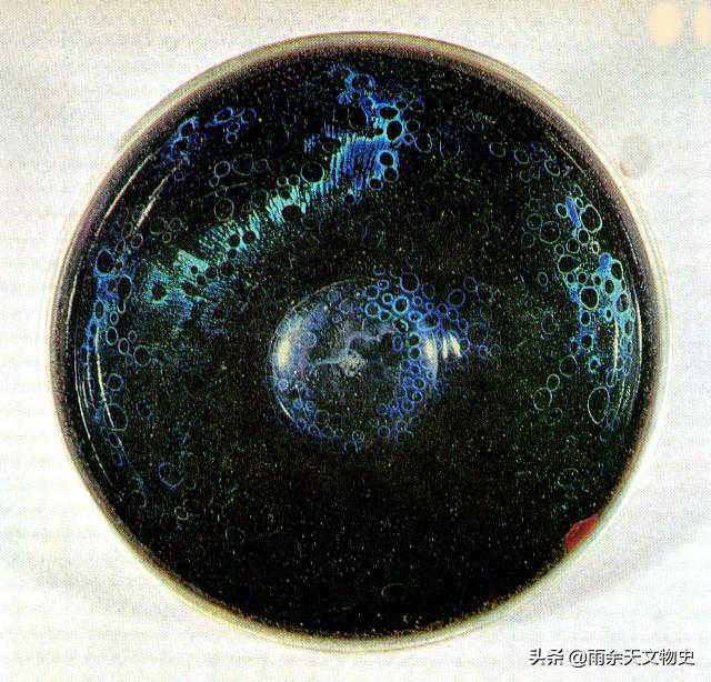 宋人最喜欢的茶盏颜色是黑釉盏。因为黑与茶汤和颜色刚好形成鲜明的对比。黑釉盏以福建建窑为最佳。建盏又以曜变天目盏为珍奇。比如这件。