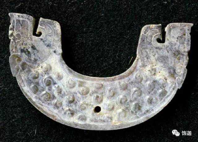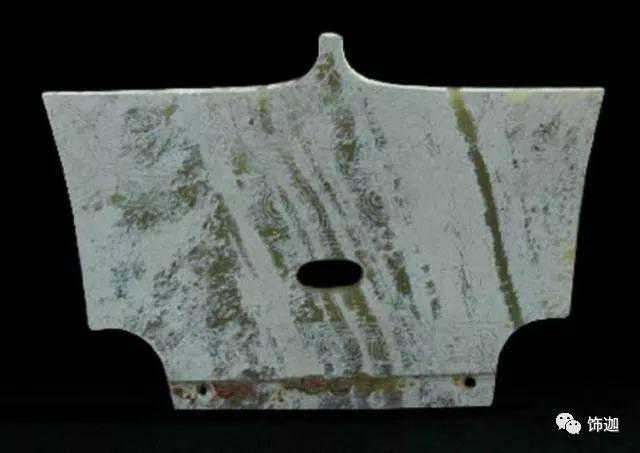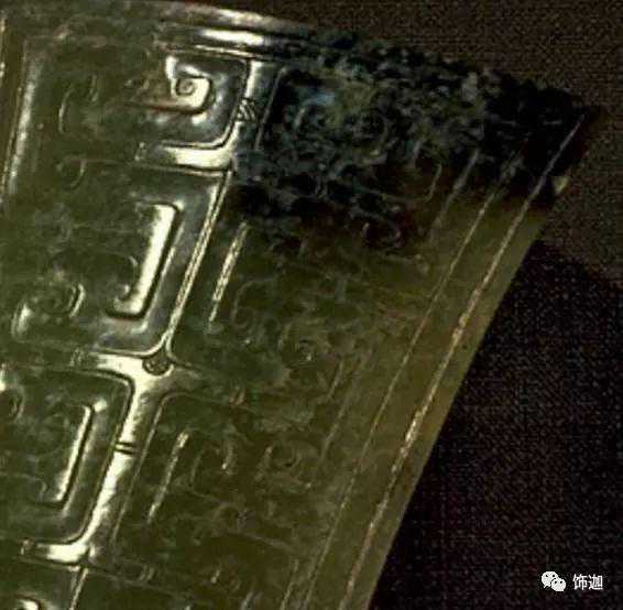 受沁的程度有重有轻,重的地方还带有棕红或黑红的块状物。沁成这种程度需要千年以上的时间。