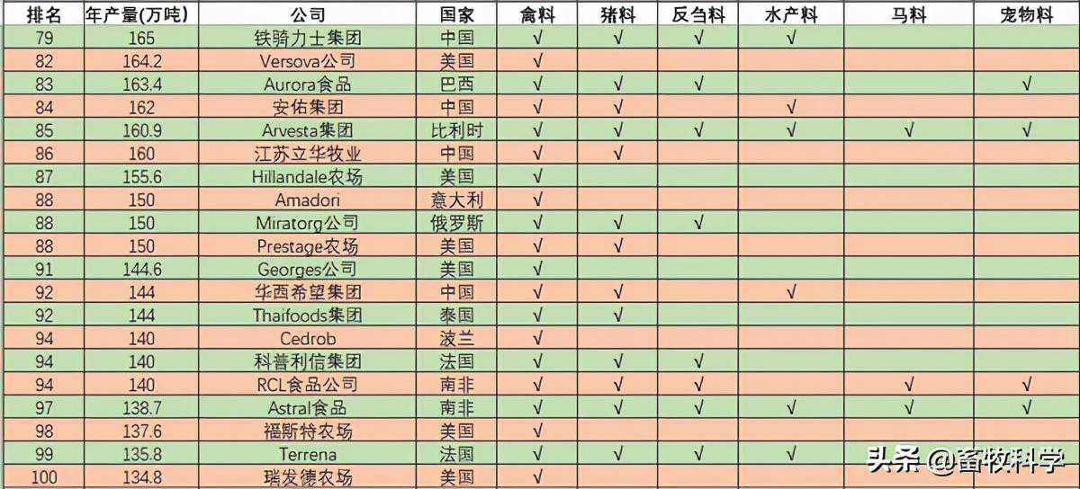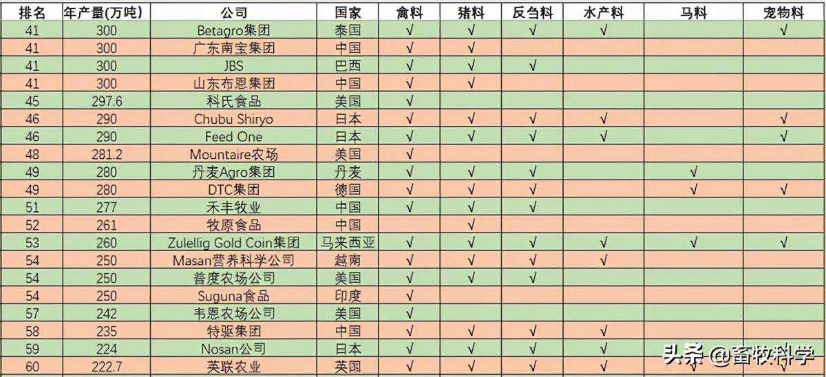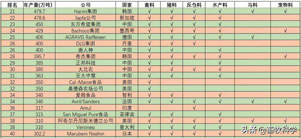 一、2020年全球百大饲料企业完整排名