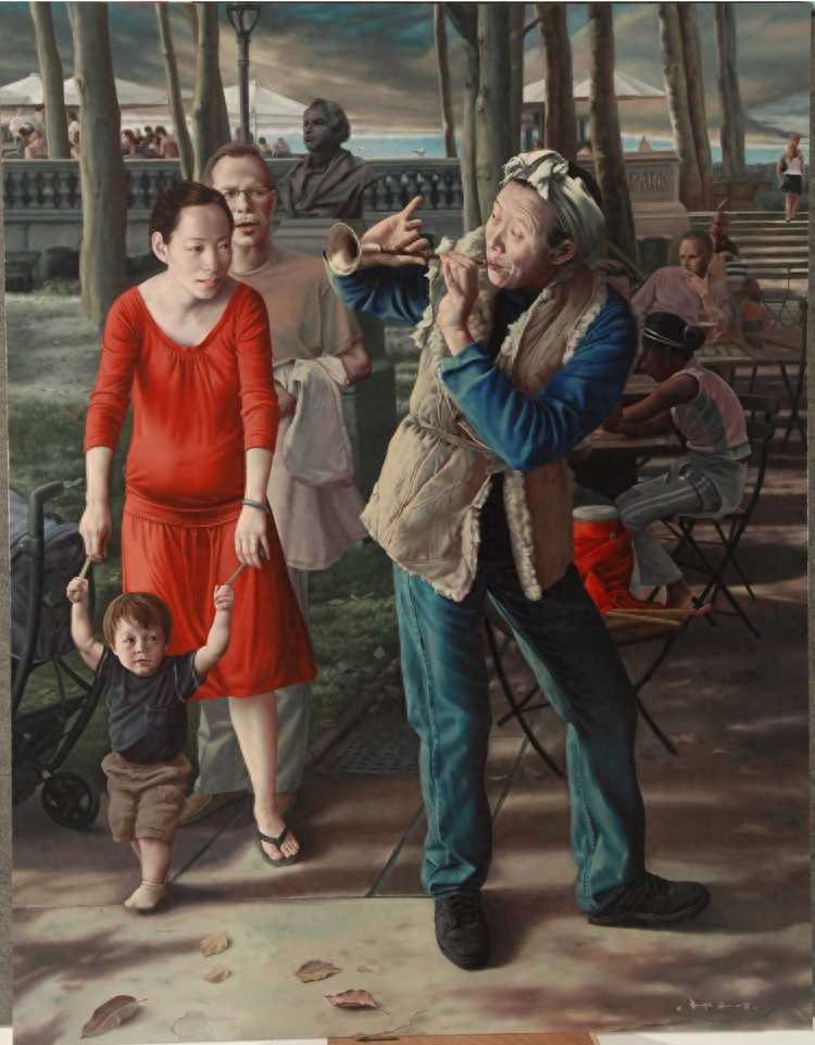 马精虎在学习期间掌握了醇正娴熟的古典主义绘画语言,在继承古典主义同时,在其油画作品中也看到了超现实主义、象征主义以及某种神秘主义的影响,他一直致力于文艺复兴时期的绘画技法与当下敏感问题的结合,探索当代观念与现实生活的古典主义表述方式,或者说他企图建立个人文艺复兴式绘画语言的现代转换,实践着传统绘画的现代表现。