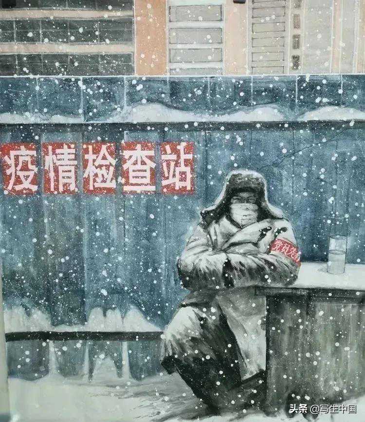 《社区防控员》中国画蒋洪亮