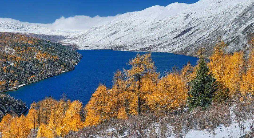 观赏雪山海子自然景色