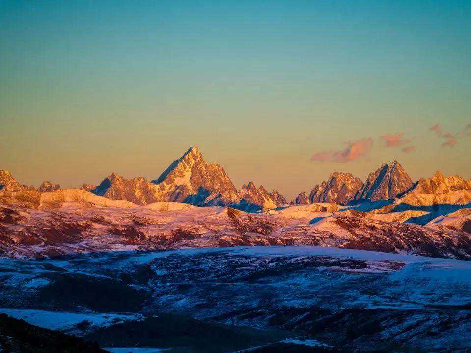 到了鱼子西,这个把日落诠释到极致的地方。站在360°的观景台上,你不仅可以遥望雅拉雪山全貌,还能目睹蜀山之王贡嘎群峰,这场面尤为壮观!