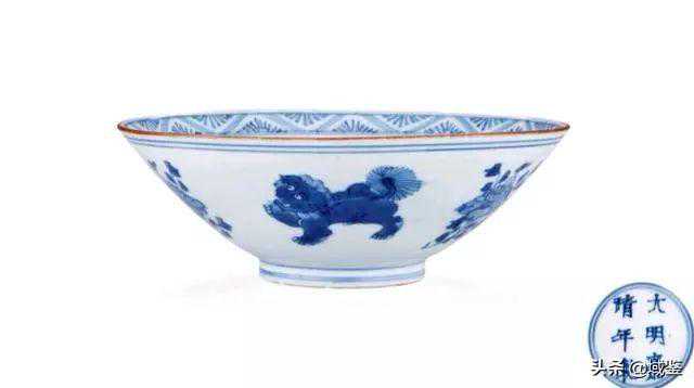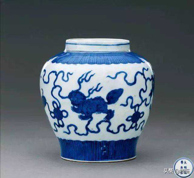 明清的狮纹瓷器断代非常的简单。明代狮纹绘制比较写意,明早期的狮纹非常凶猛,毛发飞扬,四肢健壮,画面多为双狮戏球。明中期的狮纹,狮头比早期大一些,身子短一些。明晚期的狮纹逐渐图案化,狮头跟烫了发一样,一圈卷毛,不见凶猛的样子。
