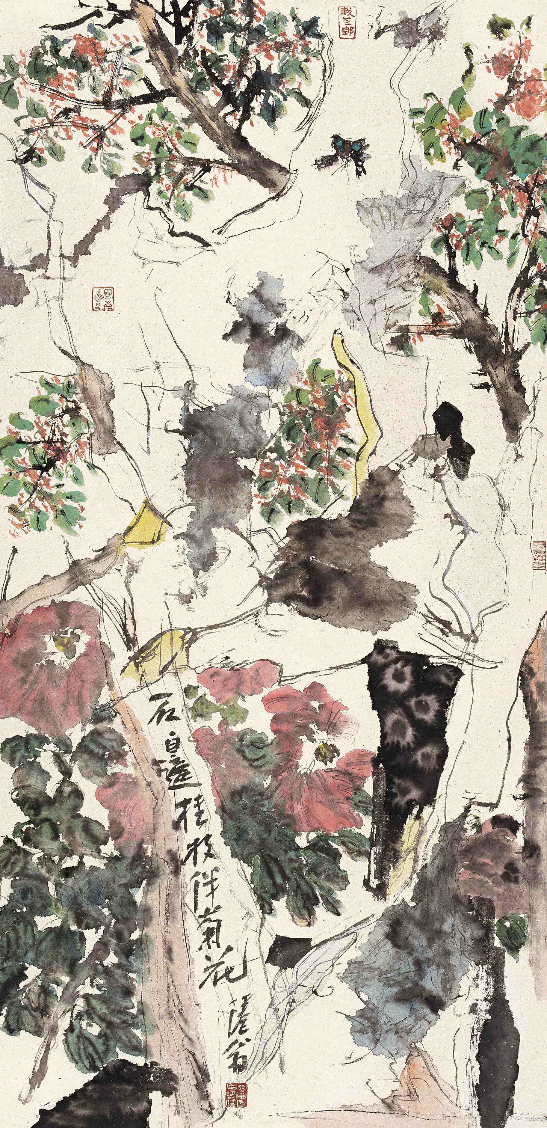 我们今天来分享的是吴冠南先生的绘画作品,吴冠南先生是江苏宜兴人,他最开始学画画也是从芥子园画谱开始的,后来又去学吴昌硕以及黄宾虹和齐白石,他的大写意花鸟画对于用色,他有自己的独到之处,他把传统绘画的泼彩转化成破彩,这样的画法足以见得他是非常大胆的,是走了一条其他人没有走,但是他去尝试的这么一条路,让他的画面色彩效果呈现出层层叠加的艺术美感,同时他还将山水画中的浑茫、沉厚之境融进花鸟画之中,使花鸟画也能具有了“份量感”,他大胆的在浓淡墨色之间,用整块的高纯度的颜色,让画面绚丽辉煌,视觉冲击力非常的强悍,让画面看上去很丰富很热闹。