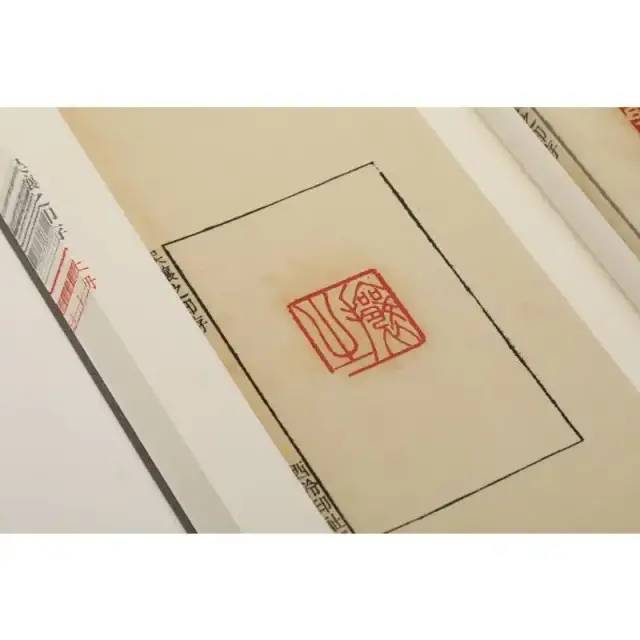 全谱使用连史纸铅印墨框,上等硃磦印泥钤盖,印蜕堆朱厚实,字口清晰、綫条劲挺,色彩靓丽,精神倍显;边款墨拓极精,刀痕毕现,为原钤印谱之佳作。